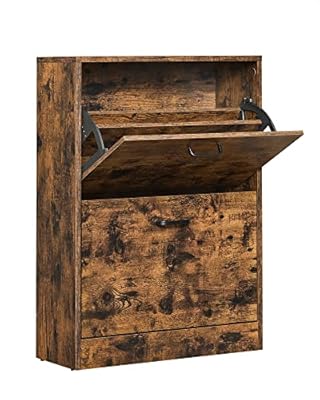 🇪🇸 VASAGLE Armario Zapatero con 2 Estantes Organizador de Zapatos Separadores Ajustables para 8-12 Pares Pasillo 24 x 60 x 83 5 cm Marrón Rústico LBC02BX