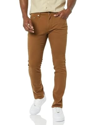 🇪🇸 Amazon Essentials Vaqueros Ajustados - Colores interrumpidos Hombre Marrón Caqui Oscuro 33W / 28L