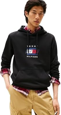 🇪🇸 Tommy Hilfiger Sudadera Hombre Linear Flag Graphic de algodón Negro Black L