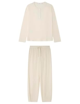 🇪🇸 Women secret Pijama de Manga Pantalón Largo Colección Lifewear Ivory S para Mujer