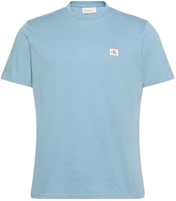 Calvin Klein Camiseta de Manga Corta Hombre Badge Jersey Classic tee de algodón Azul Smoke Blue M