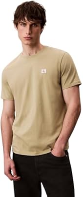 Calvin Klein Camiseta de Manga Corta Hombre Badge Jersey Classic tee de algodón Beige Cedar M